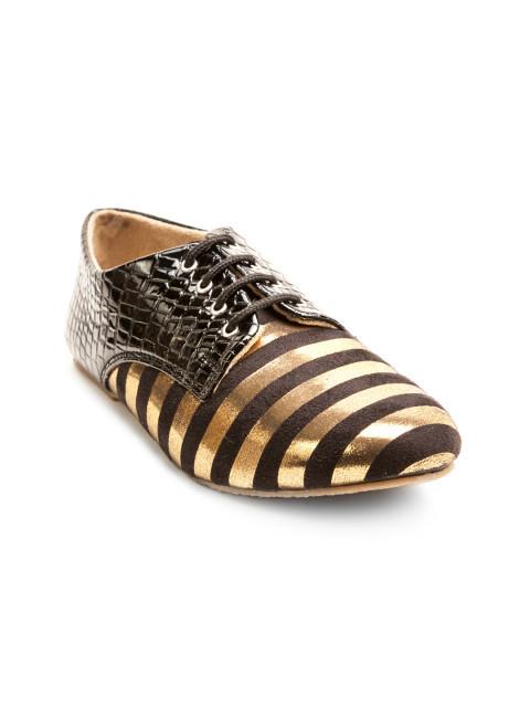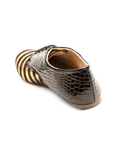A couple of brown and gold-toned striped casual shoes with finished detail, has focal ribbon ups.Faux leather upper.Textured outsole.
