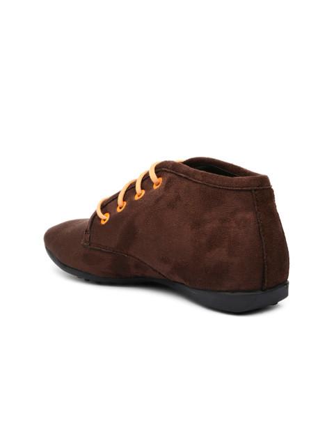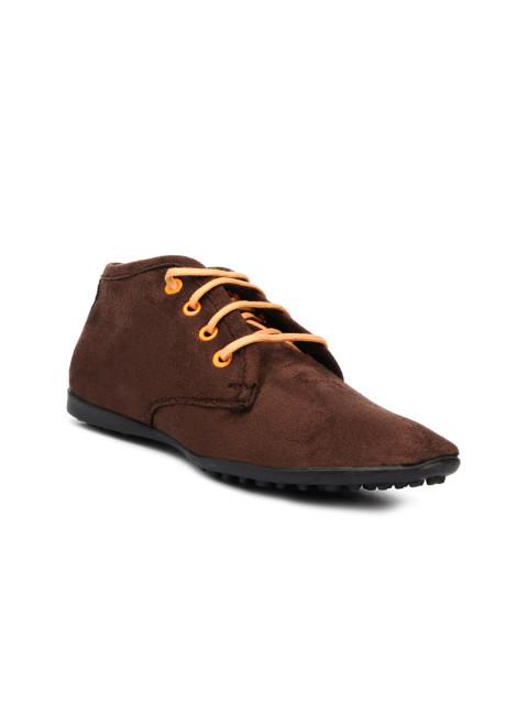 A couple of brown casual shoes with focal ribbon ups and mid-beat styling.Suede upper.Padded footbed.Tough outsole with stubs.