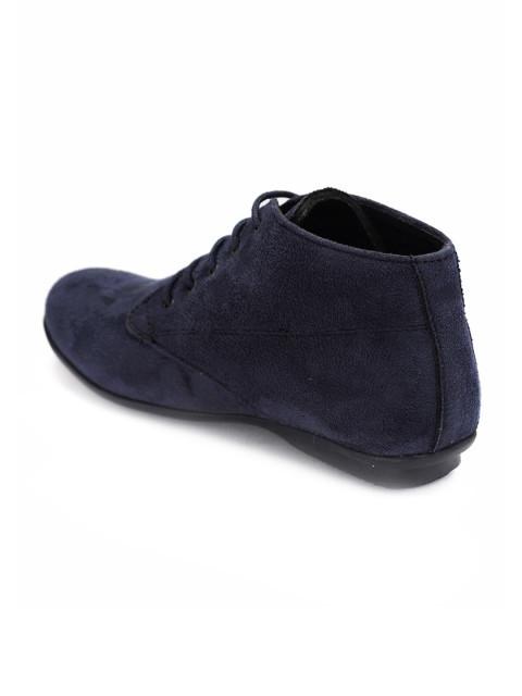 A couple of navy blue casual shoes with mid-beat styling and focal trim ups.Faux leather upper.Cushioned footbed.Textured outsole.